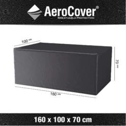 Die atmungsaktive Aerocover Schutzhülle ist passend für rechteckige Tische bis zu 160 cm x 100 cm inklusive Stühle mit niedriger Rückenhöhe (Höhe der Hülle 70 cm). Das atmungsaktive AeroCover-Gewebe ist wasserbeständig und reduziert die Kondensbildung, wodurch der Bildung von Schimmel vorgebeugt wird. AeroCover Schutzhüllen verlängern die Lebensdauer Ihrer Gartenmöbel. AeroCovers sind aus leichtem Ripstop Polyester mit einer integrierten, atmungsaktiven Membran hergestellt. Dank des dünnen Gewebes sind diese Hüllen besonders handlich in der Anwendung. Bei Nichtgebrauch sind sie platzsparend aufzubewahren und nehmen, auch dank der integrierten Aufbewahrungstasche, sehr wenig Platz ein. Die Hülle ist mit einem Zugband mit zwei Stoppern ausgestattet, so dass eine optimale Befestigung sichergestellt ist. Das AeroCover-Gewebe ist 100 % wasserdicht, die Nähte sind spritzwasserfest.