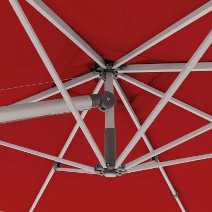 Der hochwertige Sonnenschirm Expert von Doppler in Rot mit seiner hübschen quadratischen Form bringt eine sommerliche Atmosphäre in Ihren Garten oder auf Ihre Terrasse. Als optimal einstellbarer Schattenspender sorgt er für ein geselliges Beisammensitzen bei angenehmen Temperaturen. Durch seinen seitlich befindlichen Schirmmast geht kein Platz verloren, sodass Ihnen eine frei nutzbare Fläche unter dem Schirm zur Verfügung steht. So bekommen Sie leicht Ihre Sonnenliegen oder auch eine ganze Möbelgruppe zum Essen, Entspannen und Plaudern untergebracht.