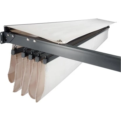 Gefertigt ist das Markisentuch aus 100 % Polyester. Mit einer Größe von 300 cm x 300 cm sorgt es für einen großzügigen Schattenwurf. Zur Reinigung kann der Stoff einfach trocken abgebürstet werden. Hartnäckige Verschmutzungen reinigen Sie mit einer Bürste und warmem Seifenwasser. Aufgrund des leichten Aufbaus können Sie die Pergola-Markise für den Winter ohne großen Aufwand ab- und im Sommer wieder aufbauen. Ansonsten ist die Faltmarkise im eingezogenen Zustand durch eine Abdeckung vor Witterung geschützt.