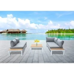Eine Reinigung kann einfach mit Wasser und einem Schwamm oder Bürste erfolgen. Darüber hinaus ist die Lounge wetterbeständig, sodass ein Außeneinsatz ganzjährig möglich ist. Es empfiehlt sich aber, die Auflagen und Kissen vor Witterungseinflüssen zu schützen um eine Langlebigkeit zu gewährleisten.