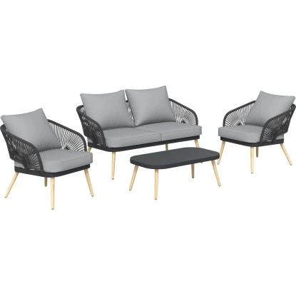 Lounge-Set Edna 4-teilig Seilbespannung Anthrazit