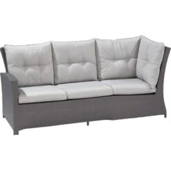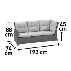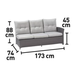 Die Garten-Loungemöbel sind handgeflochten, wodurch sie zu einem edlen Unikat werden. Das Polyrattan-Geflecht in der Farbe Deep Water ist witterungsbeständig. Durch das leichte, jedoch stabile Aluminiumgestell punktet das Set mit einem einfachen Handling, da die einzelnen Möbelstücke leicht an die gewünschte Stelle bewegt werden können. Die bequemen Auflagen und Kissen in der Farbe Concrete sind mitenthalten. Die Bezüge bestehen aus 100 % Polyester. Schaumstoff mit einer Stärke von 10 cm ist das Füllmaterial der Sitzkissen. Die Rückenkissen sind mit gesponnenem Polyester, das 6 cm Stärke aufweist, gefüllt.
