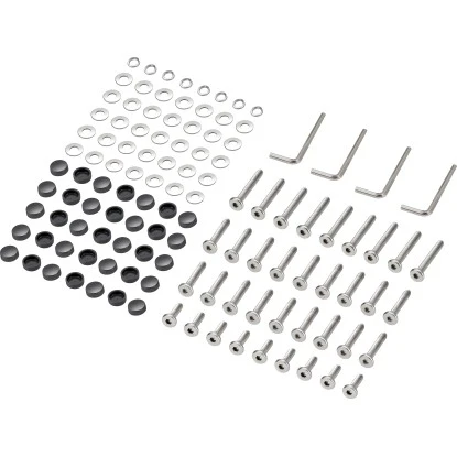 Das 117-teilige Montageset dient dem stabilen Aufbau des Sofa-Lounge-Sets Roverval. Es sorgt für eine sichere Verbindung von Untergestellen und Sitzelementen sowie der Tischplatte. Der Befestigungssatz beinhaltet Schrauben, Unterlegscheiben und Federringe sowie Abdeckkappen für eine einheitliche Optik. Gefertigt ist das Schraubenset aus rostfreiem Edelstahl. Damit die Montage schnell und unkompliziert durchgeführt werden kann, liegen passende Inbusschlüssel anbei.