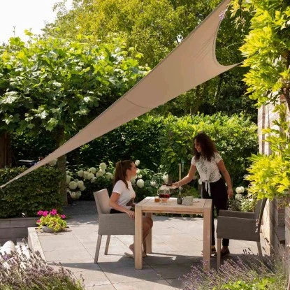 Bei einem kurzen Schauer bequem draußen sitzen bleiben ist mit dem Nesling Sonnensegel Dreamsail kein Problem. Genießen Sie Ihren Garten mit dem Dreamsail Sonnensegel. Der Stoff wird aus gewebtem Polyester hergestellt, 220 g/m². Dank der dichten Struktur ist das Sonnensegel wasserabweisend. Auf dies Weise können Sie bei einem kurzen Schauer draußen sitzen bleiben. Das Dreamsail sollte mit 30 Grad Gefälle aufgehangen werden, damit das Regenwasser gut ablaufen kann.