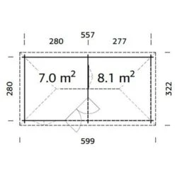 Palmako Holz-Pavillon Melanie 7,0 + 8,1 m² aus 28 mm Blockbohlen mit winddichter Chaletschnitt-Eckverbindung mit Eckeinstieg. Der Pavillon verfügt über eine praktische Überdachung mit Rückwand. Die stabile, teilverglaste Doppeltür mit Leimholzrahmen und Zylinderschloss hat niedrige, mit Edelstahl abgedeckte Türschwelle. Die Doppeltür und tiefe, nach Außen öffnende Doppelfenster haben Einfachverglasung und aufgesetzte Sprossen. Zum Bausatz gehören auch imprägnierte Fundamenthölzer, 16 mm Dachbretter und 19 mm Fußbodenbretter mit Nut und Feder, Sturmleisten, sowie Montageset. Der Pavillon ist bereits mit einer transparenten Tauchgrundierung versehen und kann nach dem Aufbau mit allen handelsüblichen Farben weiterbehandelt werden. Dacheindeckung ist nicht im Lieferumfang enthalten. Der Pavillon kann auch spiegelverkehrt aufgebaut werden.
