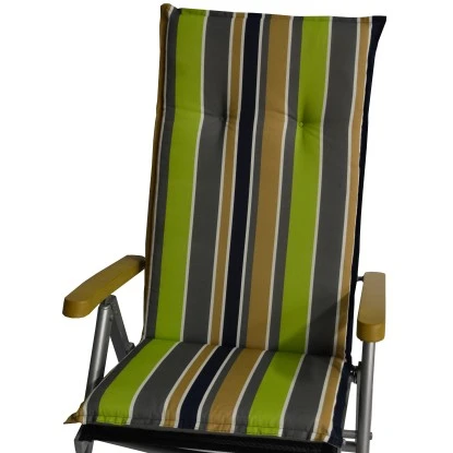 Saumauflage für Niedriglehner Gartenstühle mit den Maßen 101 cm x 50 cm und einer Polsterstärke von 6 cm. Die Auflage hat eine Schaumstoff- und Vliesfüllung. Die Stoffqualität ist eine Mischqualität in 50% Baumwolle und 50% Polyester. Der Stoff ist schadstoffrei.