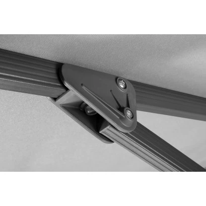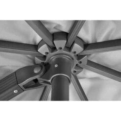 Der Mast und die Streben des Schirms sind aus leichtem, aber stabilem Aluminium gefertigt und exzellent verarbeitet. Die solide Bespannung aus 100 % Polyester-Gewebe (200 g/m²) ist robust, abnehmbar und waschbar. Außerdem zeichnet sie sich durch eine sehr gute Lichtechtheit aus, was bedeutet, dass das Material auch bei starker Sonneneinstrahlung kaum ausbleicht. Dank des Lichtschutzfaktors von UV 50+ können Sie die Sonnentage unbeschwert genießen.