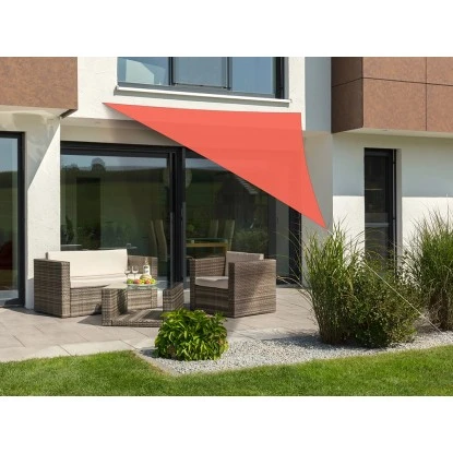 Die Kantenlänge des gleichschenkligen Sonnensegels beträgt jeweils ca. 360 cm und ist damit ideal um eine größere Sitzecke zu beschatten. Gleichzeitig wird Ihnen ein UV-Schutz von ca. 90 % geboten.
