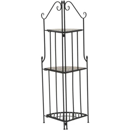 Holen sie sich den Landhaus-Charme in den Garten. Das Siena Garden Eckregal Prato erschafft mit seiner Mosaik-Optik ein natürliches und wunderschönes Milieu im klassischen Landhaus-Stil. Das Gestell ist aus besonders robustem Stahl, welcher zudem pulverbeschichtet und pflegeleicht ist. Wie für die Serie üblich, bietet es drei Böden als Abstellmöglichkeit, ist zusammenklappbar und überzeugt daher mit seiner Funktionalität. Das Prato Eckregal in Mosaik-Optik wird damit zur Zierde Ihrer grünen Gartenwelt.