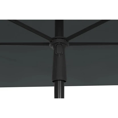 Dank des Schiebers können Sie den Marktschirm bequem öffnen und schließen. Im aufgespannten Zustand besitzt er eine Größe von 180 cm in der Breite und 180 cm in der Tiefe. Damit Sie den Schirm auch bei niedrigem Sonnenstand morgens und abends perfekt für einen idealen Schattenplatz ausrichten können, lässt er sich am Mast abknicken bzw. neigen. Die maximale Höhe des Sonnenschirms beträgt 195 cm.