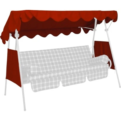 Das Hollywoodschaukel Sonnendach inkl. 2 Seitenteilen in der Qualität PE-Bändchengewebe (Polyethylen) ist wasser- und schmutzabweisend beschichtet und weitgehend lichtecht. Die Lieferung erfolgt in der Farbe Bordeaux. Das Sonnendach ist passend für die Angerer Standard Hollywoodschaukel und viele Fremdfabrikate.