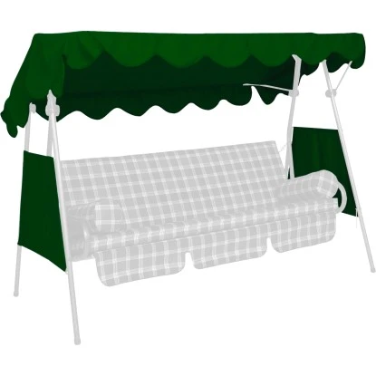 Das Hollywoodschaukel Sonnendach inkl. 2 Seitenteilen in der Qualität PE-Bändchengewebe (Polyethylen) ist wasser- und schmutzabweisend beschichtet und weitgehend lichtecht. Die Lieferung erfolgt in der Farbe Grün. Das Sonnendach ist passend für die Angerer Standard Hollywoodschaukel und viele Fremdfabrikate.