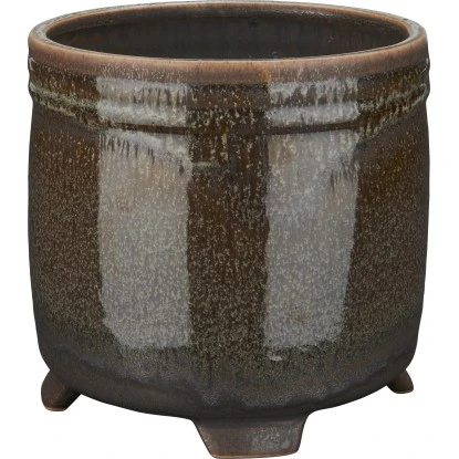 Mit dem runden Übertopf aus der Kollektion Ancient Secrets lassen sich Pflanzen individuell in Wohnräumen platzieren. Er kann direkt auf den Boden gestellt werden und kommt ebenfalls im Regal oder auf der Fensterbank zur Geltung. Gefertigt ist der Pflanztopf aus Porzellan in verschiedenen Brauntönen. Seine zylindrische Form besitzt Füße und stellt die Maße 14,8 cm x 15,5 cm (H x Ø) zur Verfügung. Die Größe eignet sich zur Aufstellung von kleinen bis mittelgroßen Pflanzen.